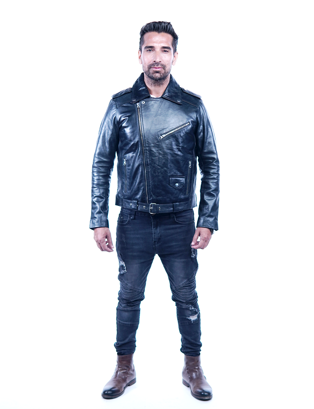 Men’s Black Leather Biker Jacket – Genuine Motorcycle Style -By Umhashco