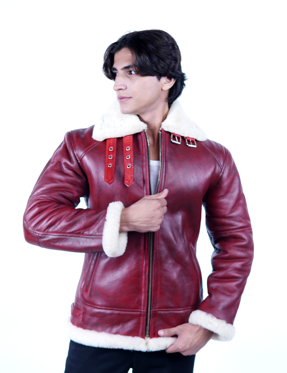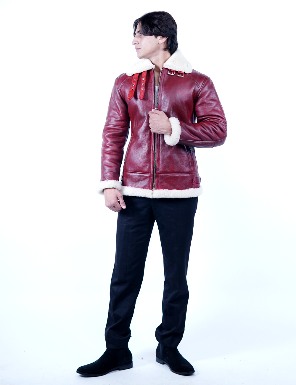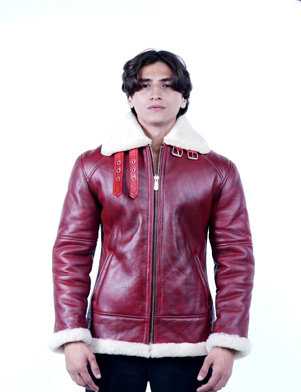Elevate your winter wardrobe with this Men’s Red Shearling Leather Jacket, crafted from 100% genuine sheepskin leather. Designed for style, warmth, and durability, this jacket features a luxurious shearling inner lining that ensures maximum comfort in cold weather. The bold red color adds a unique and fashionable touch, making it a statement piece for every winter outing.